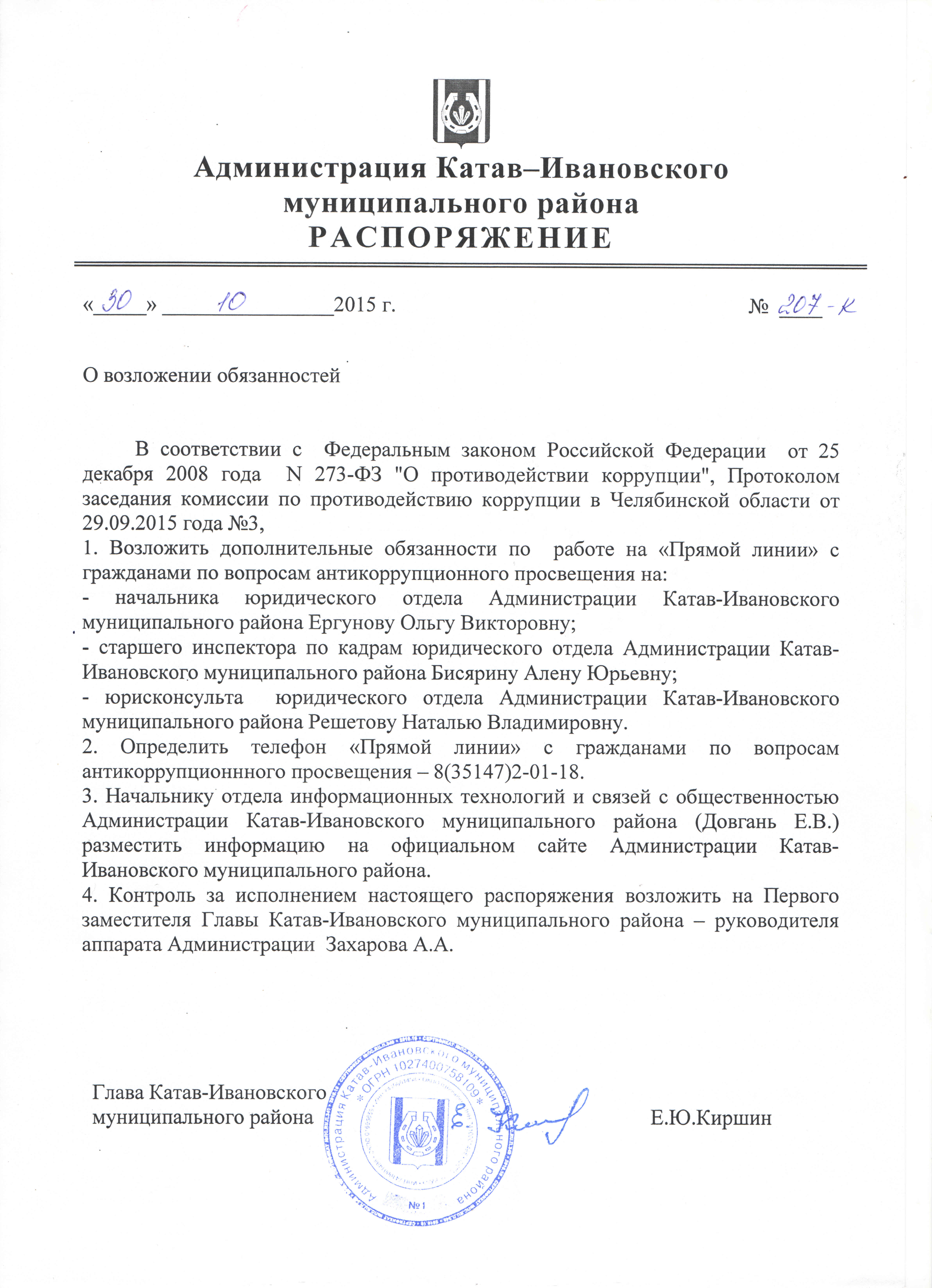 | Постановление от 26.11.2021г. Об организации работы телефона Горячей линии (телефона доверия) для сообщений о проявлении фактов (268.1 КБ) | 268.1 КБ |