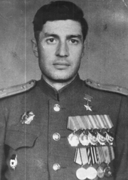 Звание Героя Советского Союза присвоено 22 февраля 1944 г. Отличился при форсировании Днепра. При отражении контратак противника на плацдарме лично уничтожил два танка и бронемашину, двух солдат взял в плен.