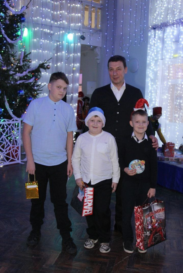 Владимир, Артём и Егор Наумовы приехали на праздник из Юрюзани вместе с мамой. О том, что загадали Деду Морозу, рассказывать нам не стали, ведь может не исполнится. Но Николай Шиманович исполнил желания ребят. Мальчишки с радостью заглянули в пакеты, а там — форма для занятий боксом, все братья увлекаются спортом, робот-трансформер и умные часы для самого старшего Егора. Радости ребят не было предела. Значит, чудеса случаются!