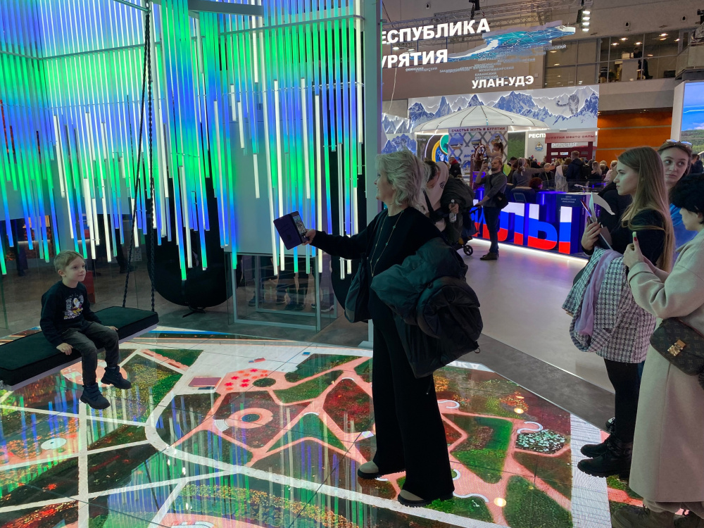— Есть в Челябинской области природная достопримечательность Айские притёсы. Там на обрыве установлены качели. Они парят над обрывом, — экскурсовод на выставке «Россия» с вдохновением рассказывает, почему экспозицию Челябинской области открывают эти качели с иммерсивным эффектом.Девиз экспозиции Южного Урала «Всё начинается с человека и его мечты». И качели символизируют достижение мечты. Каждый посетитель, качаясь на них, может увидеть под собой виды городов нашего региона, достопримечательных мест. Они мелькают один за другим, и создается впечатление — ты паришь над ними. Неудивительно, что именно у этих качелей больше всего посетителей.