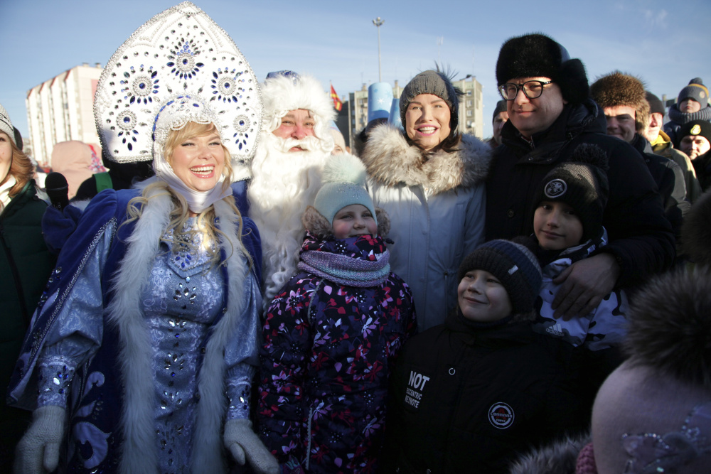 На площадке перед ледовой ареной «Трактор» разместились более 60 снеговиков, в том числе и семьи губернатора. Рядом со своим снеговиком Алексей Текслер с супругой Ириной и сыном Мишей встретились с детьми, желания которых исполнили. Семья Текслеров вручила подарки Анастасии из Магнитогорска и Демьяну из Челябинска.