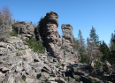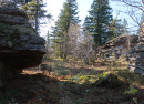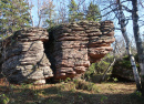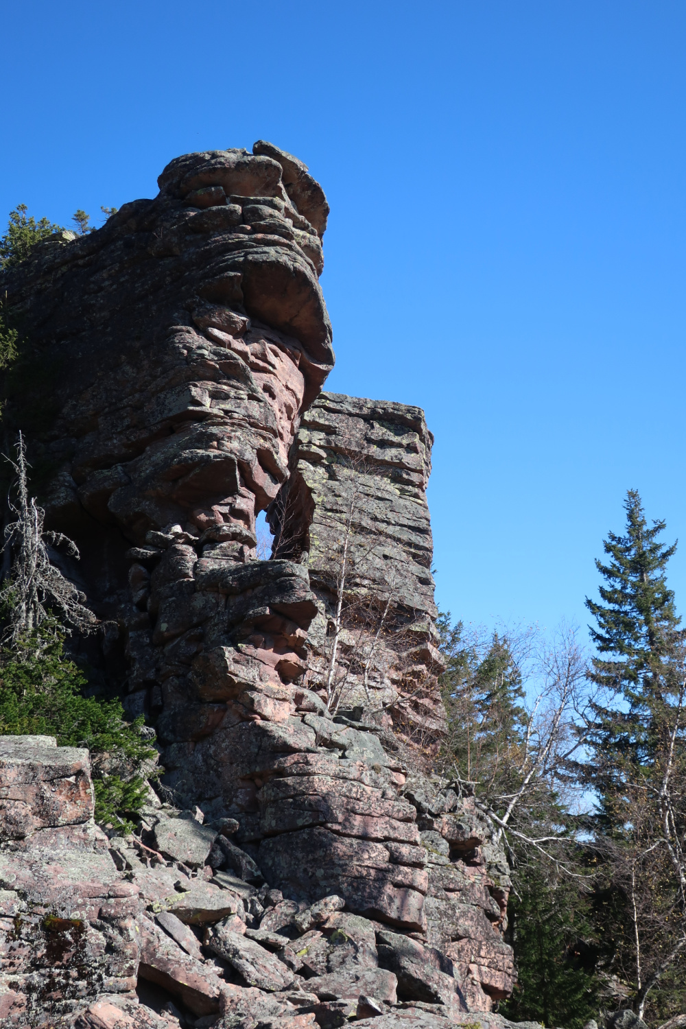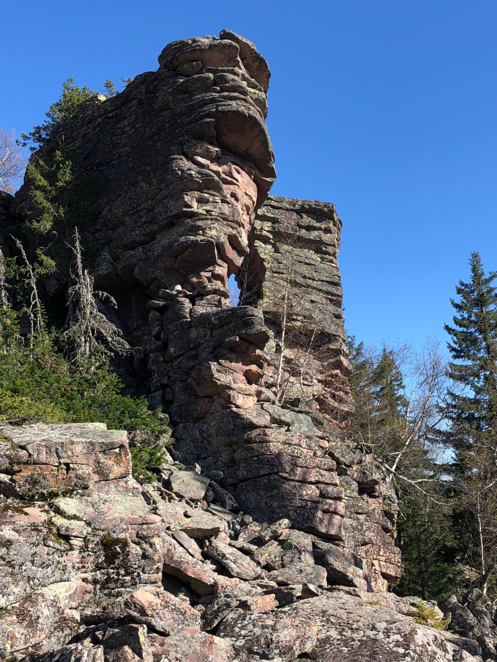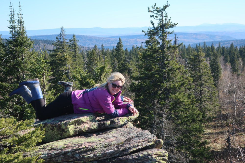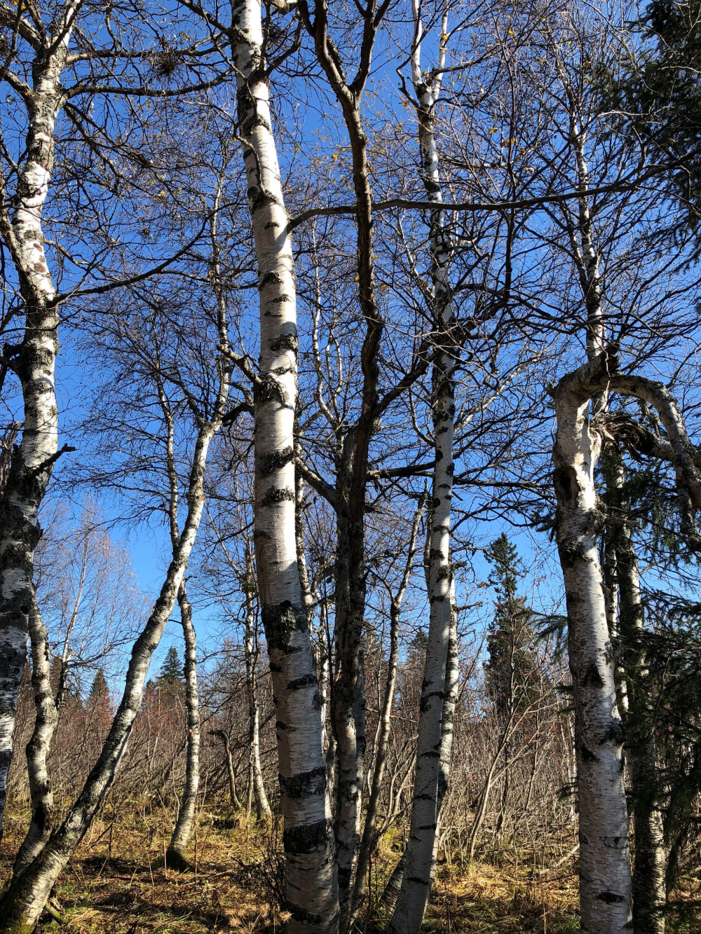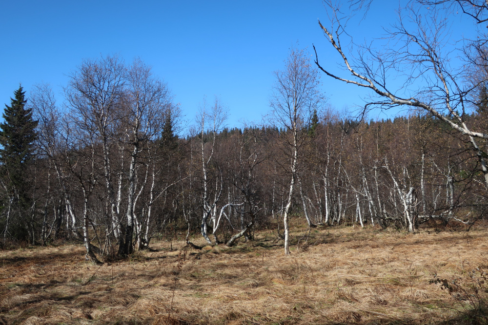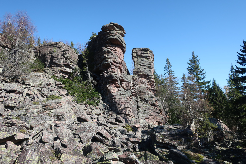 Еще два десятка минут – и мы у скал «Два брата». Красота неописуемая! Поднимаемся, делаем снимки и по лону торфяника, покрытого карликовыми берёзами, движемся к цели.
