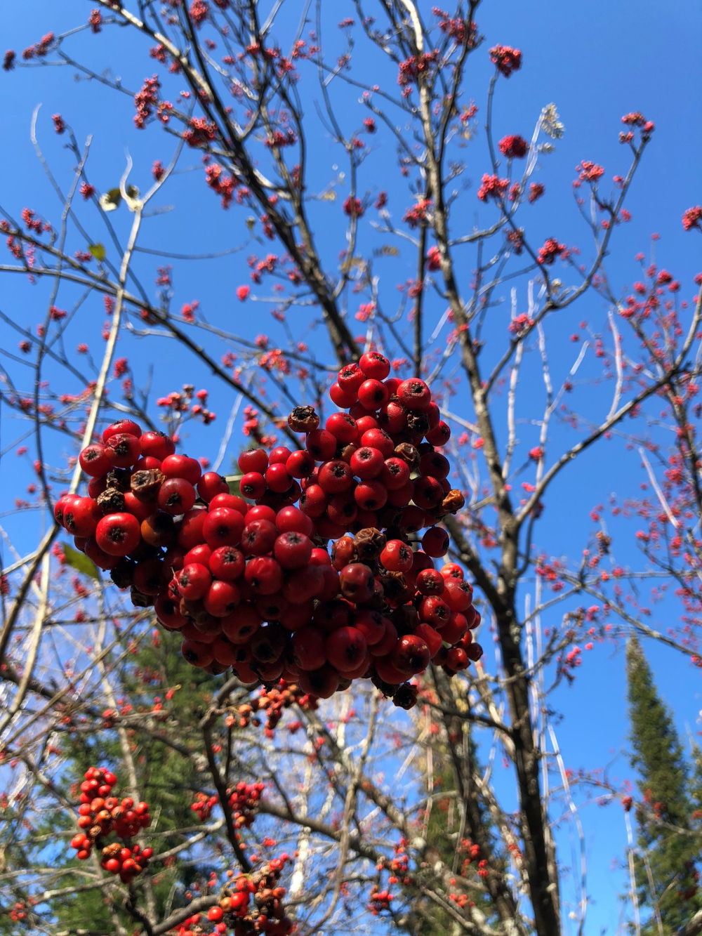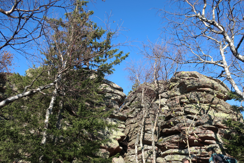 Чем выше поднимаемся, тем ближе заветная встреча. Небо чистое. Вода в ручьях – сладкая, правда, немного отдающая железом.На рябинах до земли свисают увесистые пунцовые гроздья. «Хотите тест?» - спрашивает Белобров. И поясняет: «Если жевать ягоды рябины, и они на вкус горькие, значит, вы не голодны и можете идти дальше. А если ягоды сладкие, значит, время сделать остановку и покушать». Все попробовали рябиновые плоды, сморщились: «Горькие!» «Значит, на курумах будет привал! Идём дальше!» - говорит инструктор.