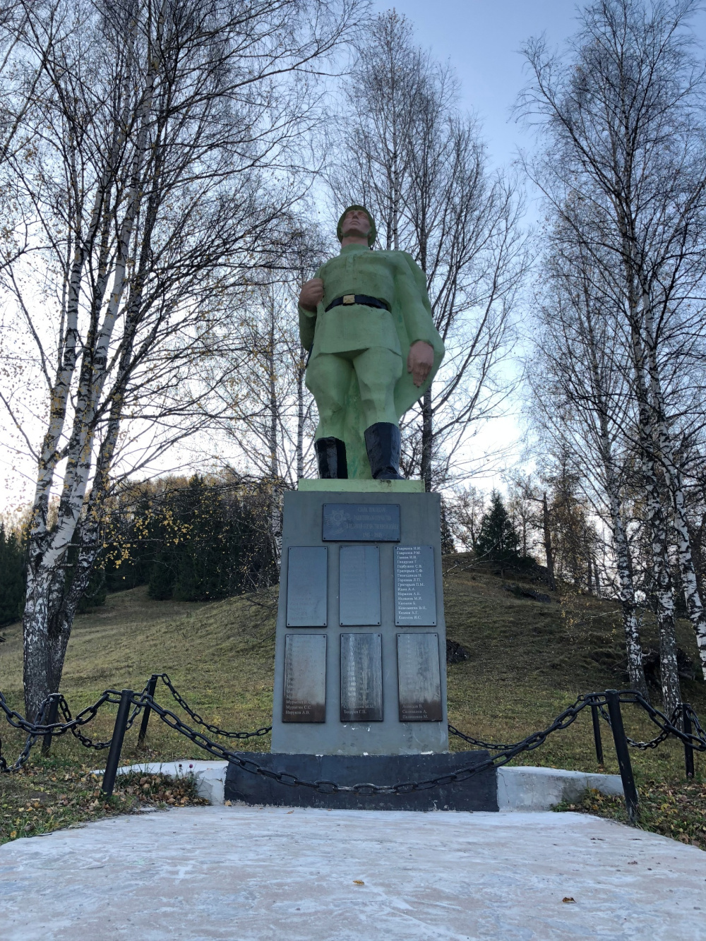 Территория сельского клуба, памятника Солдату ухожена. Мы поднялись к монументу, прочитали фамилии павших на фронтах Великой Отечественной войны солдат, почтили их память минутой молчания.