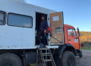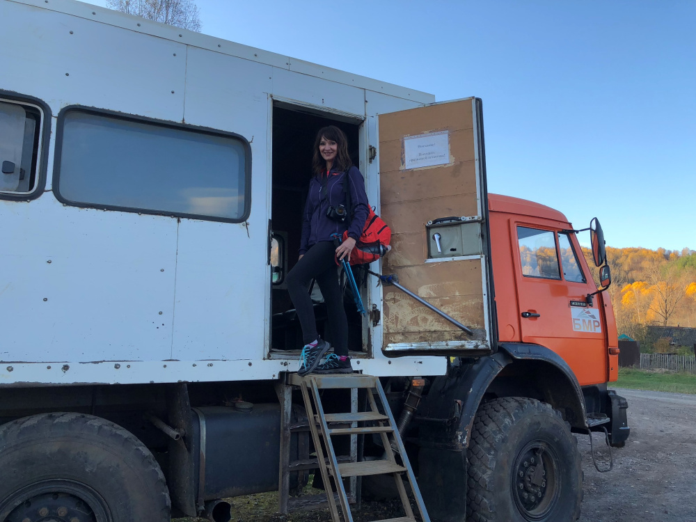 Руководители экспедиции Владимир Белобров и Сергей Дурницын провели инструктаж об особенностях подъёма. За нами пришёл и «вахтовый» КамАЗ – наш «плавучий голландец», водитель которого доставил нас в лучшем виде до переправы через реку Атя. До этого на нашем вездеходе три раза пересекли реку вброд, беспрепятственно проехали топкие болота…