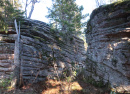 Далее по скальному узкому колодцу мы спускаемся в пещеры, выходим в урочище «Городище» и слушаем историю его появления.