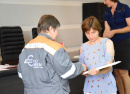 Почетные грамоты совета депутатов Катав-Ивановска вручены Владимиру Зайцеву, слесарю-ремонтнику, Светлане Санитаевой, приемосдатчику груза и багажа, благодарственные письма – Алексею Печерскому, слесарю-ремонтнику, Светлане Гулиной, контролеру Службы внутреннего контроля.