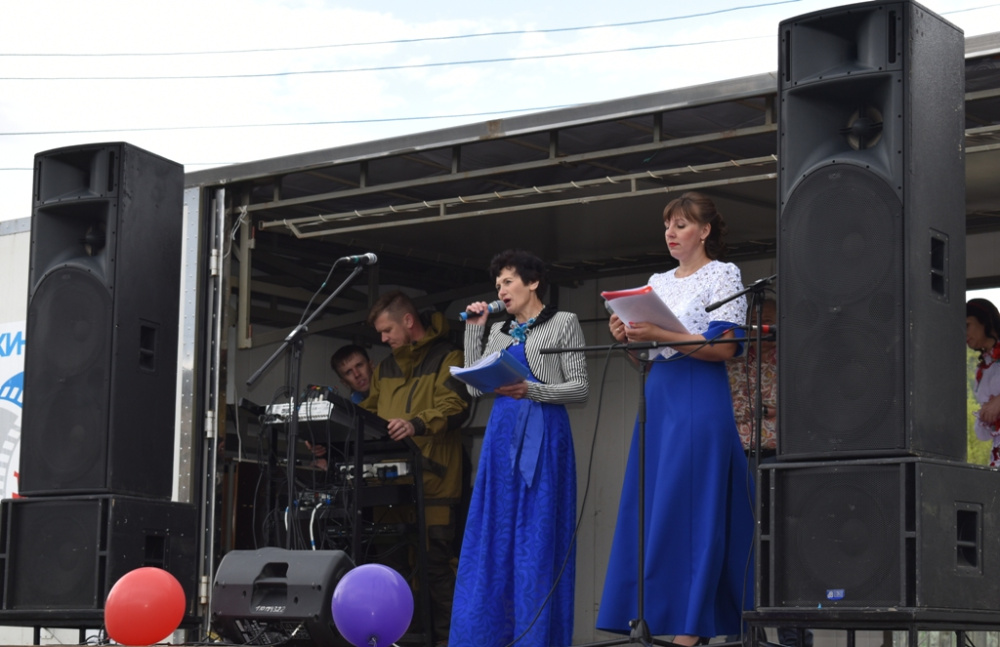 Начали праздничный концерт ведущие Оксана Утёнкова и Татьяна Скобочкина, в элегантных нарядах синего цвета. Они настроили собравшихся на позитивную волну и предоставили микрофоны артистам, которых любят и знают не только в Орловке, но и во всей Челябинской области, - Игорю и Михаилу Журёнковым, Виктору и Светлане Холиным. Кстати, Виктор, как всегда, взял с собой для выступления аж девять гармоней! Ну, а концепция сценария основана полностью на местном материале и воплощена в реальность местными талантами.