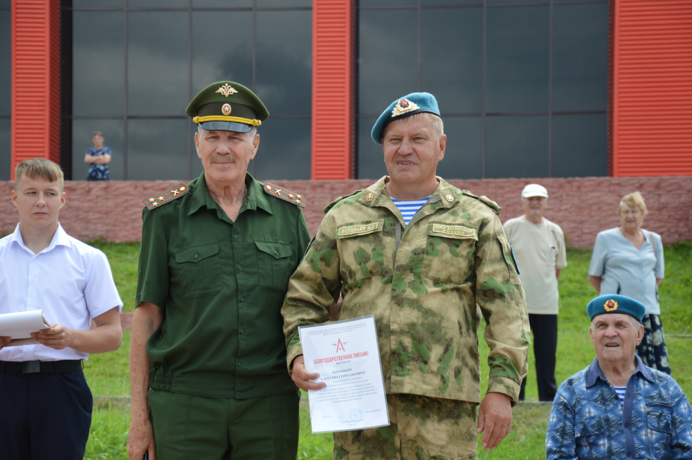 Глава муниципалитета, секретарь Катав-Ивановского местного отделения партии «Единая Россия» Николай Шиманович поздравил участников и ветеранов ВДВ, а так же всех присутствующих с праздником и вручил благодарственные письма Главы Катав-Ивановского муниципального района за активное участие в организации и проведении мероприятий в военно-патриотическом лагере «Десантник» на территории Катав-Ивановского района куратору партпроекта «Историческая память», директору лагеря Алексею Воробьеву, начальнику управления образования района, координатору партпроекта «Новая школа» Елене Юриной, а так же самым активным ученикам, студентам, педагогам, волонтерам, организаторам, активным жителям села Серпиевка и творческим коллективам (всего 60 человек).