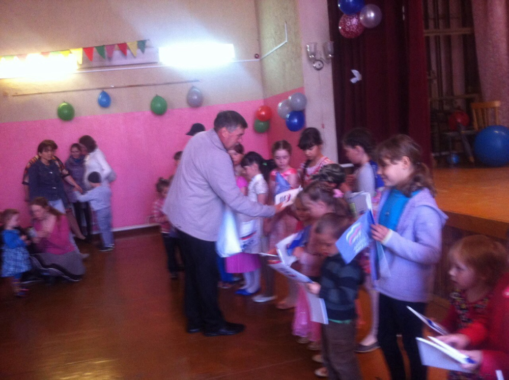 Глава Серпиевского сельского поселения, секретарь Серпиевского первичного отделения ВПП «ЕДИНАЯ РОССИЯ» Владимир Куликов поздравил детей и родителей с праздником, пожелал им мирного ясного неба, радости и улыбок. Затем вместе с заместителем секретаря Верой Курдаковой подарили детям блокноты и авторучки с логотипом, канцелярские принадлежности, приобретённые на партийные взносы Серпиевского первичного отделения.