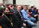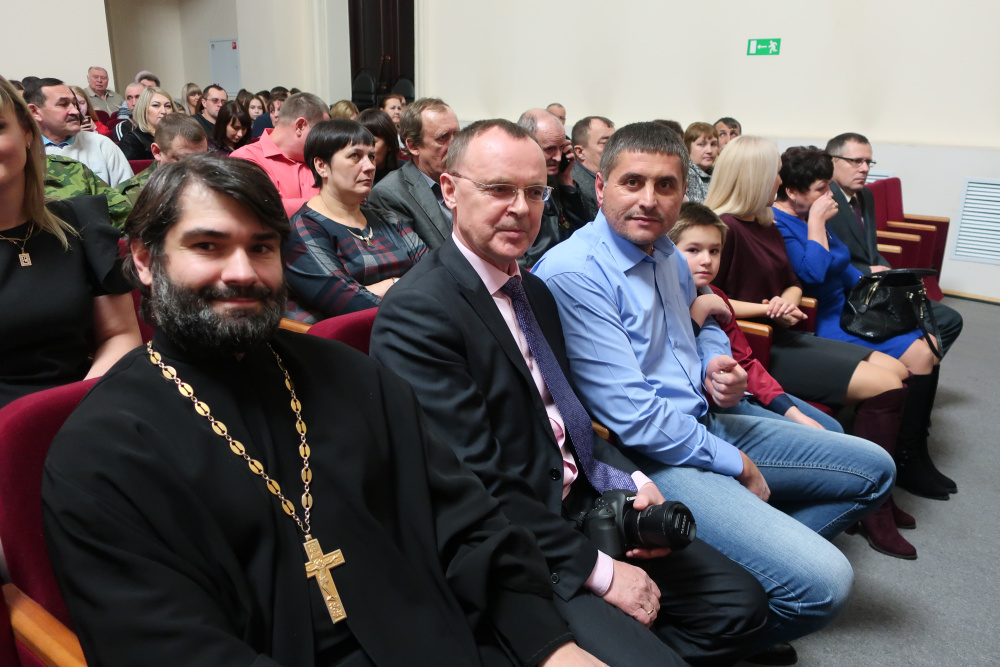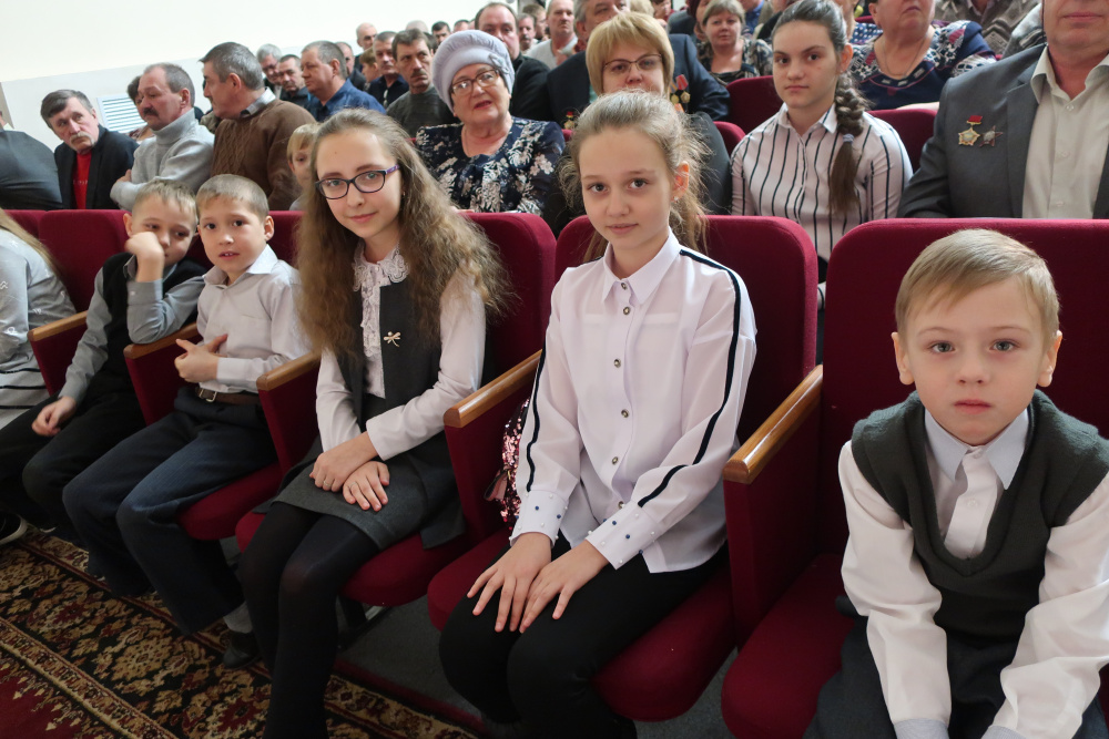 Затем руководители муниципалитета Евгений Киршин и Николай Рудаков, председатель районных отделений «Боевое братство» и «Союз десантников» Алексей Воробьёв провели церемонию вручения юбилейных медалей 71 участнику афганских событий. В зале в этот момент бурной рекой лились тёплые аплодисменты… А после к аудитории обратился настоятель Иоанно-Предтеченского храма, благочинный округа, протоиерей о.Александр Симора. Как и обещали организаторы победителям конкурсов детских сочинений и рисунков, на большой сцене провели их чествование. О работе жюри и как потрудились дети, рассказала начальник управления образования района Клавдия Киселёва. Талантливые десятки школьников с гордостью и радостью поднимали вверх заслуженные дипломы. А ещё они получили возможность сфотографироваться на память с участниками вокальной группы «Каскад». В ближайшее время лауреатов конкурсов ждёт приятное событие - поездка в челябинский театр. Торжество успешно и ярко провели автор сценария Ирина Анисимова со своим дуэтом юных помощников – Калерией Киршиной и Глебом Биньковским. Коллектив РДК во главе с директором Алексеем Бисяриным отлично оформили сцену и продумали реалистичный 3Д-сюжет баннера, который на снимках передаёт картину события - вывод советских войск из Афганистана.