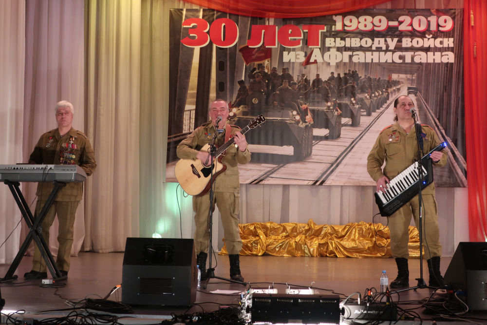 По просьбе оргкомитета по проведению памятных мероприятий по случаю 30-летия вывода советских войск из Республики Афганистан главой района Евгением Киршиным было принято решение о приглашении на концертную программу ансамбля «Каскад», а также о закупке памятных медалей и удостоверений для всех участников афганской войны, проживающих на территории муниципалитета. Известно, что интернациональный долг в республике Афганистан исполняли 155 наших земляков, призванных на службу в ряды Советской Армии. Сегодня на территории района проживают 104 ветерана афганских событий, из них – 40 юрюзанцы, 64 – катав-ивановцы и жители сёл. 49 умерли. Двое погибли - катав-ивановец, командир миномётного взвода парашютно-десантного батальона Валерий Борисович Денисов (1962-1982 г.г.), юрюзанец, водитель миномётной батареи погранвойск Сергей Николаевич Воробьёв (1962-1982 г.г.). Они награждены орденами Красной Звезды посмертно. А 14 февраля 2019 года на сцену для получения юбилейных наград приглашались родные погибших Денисова и Воробьёва.