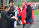 Поздравить физкультурников пришли представители власти. Глава Катав-Ивановского района Евгений Киршин обратился к присутствующим с приветственным словом: «Сегодня спорту уделяется особое внимание,- отметил глава.- Челябинская область является не только кузницей спортивных талантов, но и местом для проведения соревнований международного уровня, отличной тренировочной базой. В следующем году состоятся первые в истории страны зимние Олимпийские Игры в Сочи. Среди регионов России Челябинская область занимает важное четвертое место по числу спортсменов - кандидатов в олимпийскую сборную. А мы в свою очередь гордимся земляками, которые защищают честь района, демонстрируют высокий класс мастерства и настоящие бойцовские качества».