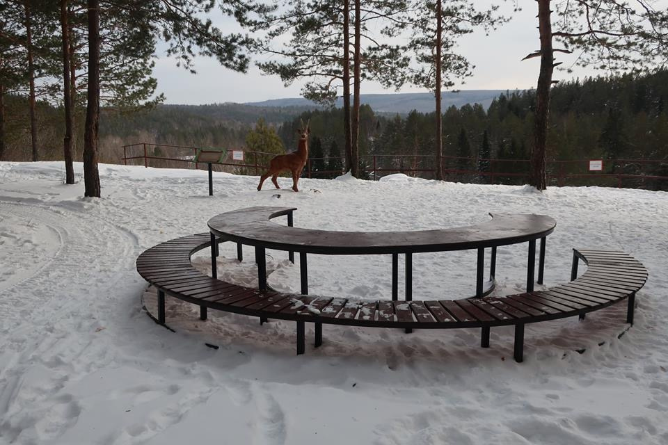 За январь нового года, по подсчётам инспекторов особо охраняемой природной территории, на тропе побывали более тысячи человек. Охотно поверю. Потому как только за короткий отрезок времени воскресенья (где-то час всего. – прим.авт.) сюда приехали более 20 взрослых и маленьких туристов. Тут приятно подышать звенящим прозрачным воздухом, который дарит бодрость и здоровье. Лесную тишину «нарушают» дружным щебетанием синицы, а на сосне весёлый дятел домик белке конопатит… Дополняют картину любопытные упитанные сойки, под весом которых качаются сосновые ветви. Ну, а тропа выведет вас в итоге на смотровую площадку, возвышающуюся над рекой Сим. Тут благодать и раздолье для фотографических фантазий! Если есть желание – можно спуститься в пещеры Колокольную и Майскую. А можно посидеть за удобным столом на симпатичных скамейках и попить чаю на свежем воздухе в компании волшебного Серебряного Копытца. Вспомнить бажовские строки, где Дарёнка делится с Мурёнкой: «И рожки видела, и копытце видела. Не видела только, как тот козлик ножкой топает, дорогие камни выбивает. Другой раз, видно, покажет». «Пр-равильно говоришь. Пр-равильно» - слышит в ответ.