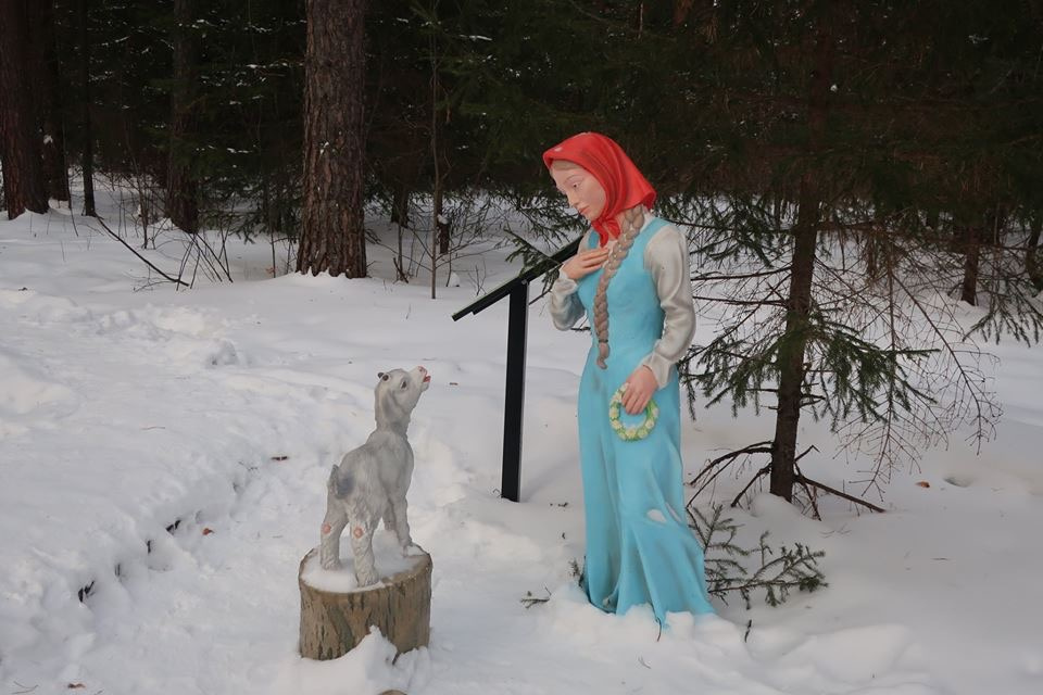 Речь идёт о новом экологическом проекте «Тропа сказок», который реализуется на территории Серпиевского пещерного заказника, точка отсчёта – сентябрь 2018 года. Несложно набрать в поисковике запрашиваемую информацию, и перед вами появятся яркие осенние снимки. На них - Алёнушка с братцем Иванушкой, Баба-Яга у своей избушки на курьих ножках, лесной хранитель Леший, Лисица и Журавль, Серебряное Копытце. Герои известных сказок «прописались» в корабельной сосновой роще, от соседа к соседу ведёт мощёная дорожка, которая сейчас плотно укутана снегом. Но снег не доставляет никакого неудобства туристам, скорее, наоборот. Это же здорово по белому мягкому покрывалу первому проложить тропу в гости к сказке, а потом по твоим следам пойдут путники и скажут тебе «спасибо». 250 метров сказки дети преодолевают на «раз, два, три». И это здорово: слышны звонкий ребячий смех, вопросы родителям, щёлканье фотокамерами. Папы и мамы обещают прочитать и перечитать сказки своим детям – правильный посыл и верная мотивация. Так что проект «Тропа сказок» я бы назвала не только познавательным, но ещё и семейным, ДОБРЫМ.