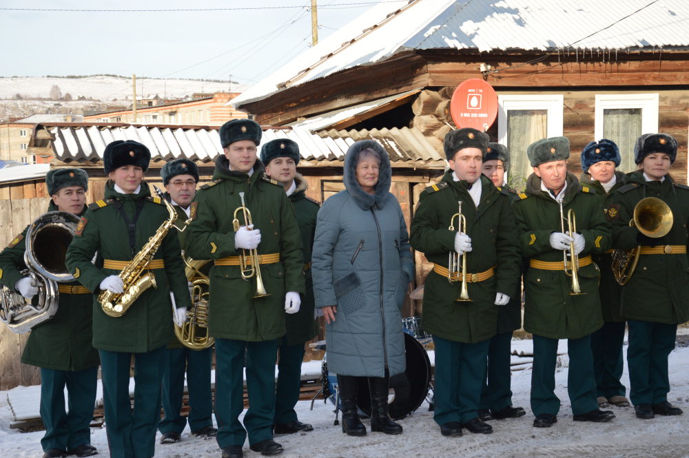Помимо слов благодарности и уважения, под окнами родителей был организован праздничный оркестр.