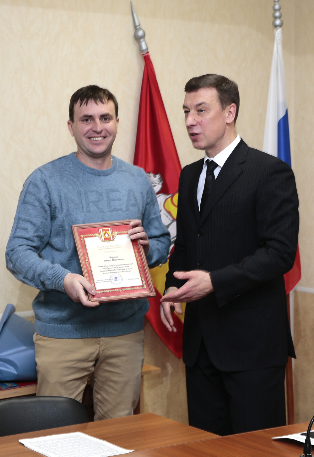 Николай Шиманович отметил Благодарностью за вклад в развитие села главу Тюлюкского сельского поселения Петра Чёрного. Причем, когда уже готовилось награждение, с просьбой отметить главу Тюлюка к руководителю муниципалитета также обратились 63 жителя Тюлюка и Александровки.