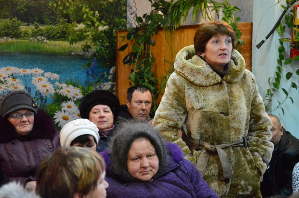 Когда все желающие селяне заняли свои места, собрание началось. И началось оно c выступления Натальи Иршиной. Она кратко рассказала о том, как прожило село этот год, какие работы выполнялись и что запланировано на следующий год.
