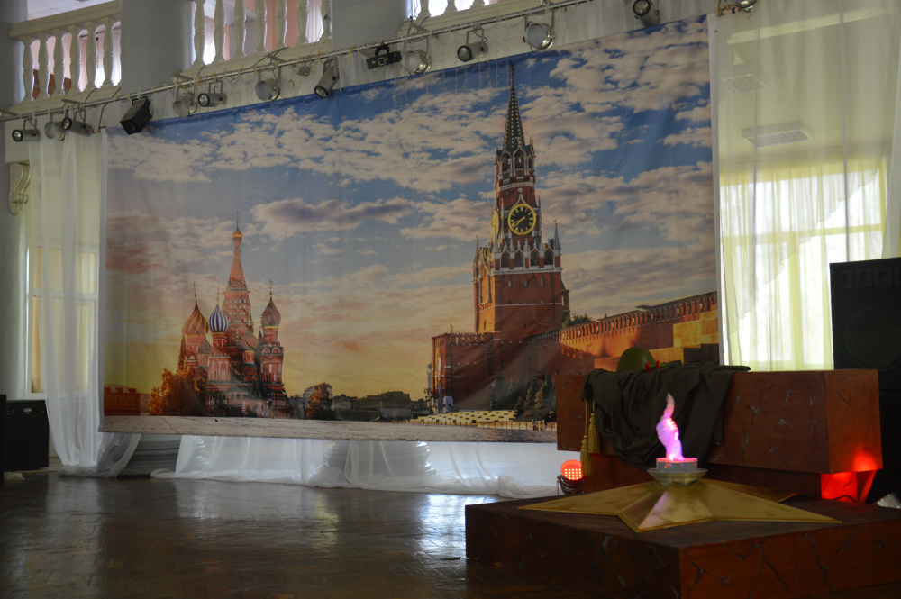 Торжество проходило в Паркетном зале районного Дворца культуры. Здесь творческий коллектив креативно оформил фойе, а место проведения вообще превратилось в стилизованную Аллею городов-героев на Красной площади Москвы, с фрагментом могилы Неизвестного солдата, где горел Вечный огонь. Очень классная задумка! Гости Губернаторского приёма оценили это по достоинству, рассматривали этюд и спрашивали, как это устроено. На фоне главной площади столицы нашей Родины, которая принимала Парад Победы, была сделана памятная фотография участников приёма от 8 мая 2019 года. Это уже история. Современная.