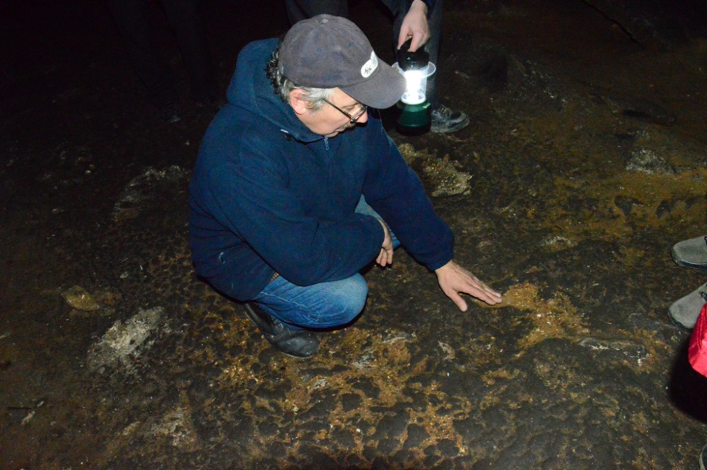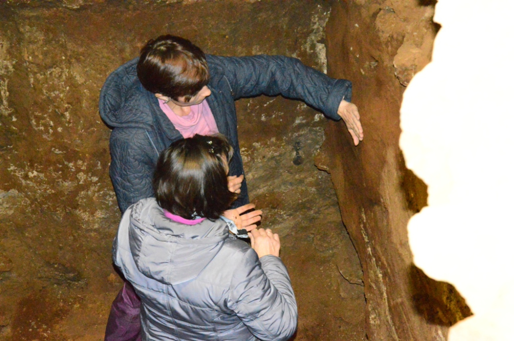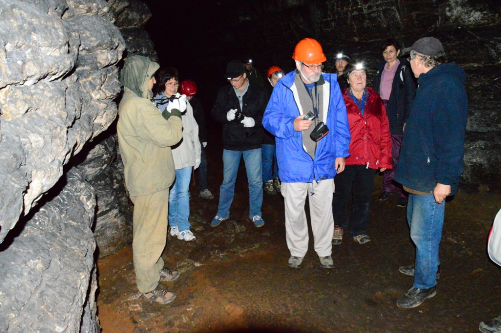 Почти сразу же после встречи большая группа гостей отправляется в пещеру. Мы следуем за ними. Во время экскурсии приходит первое понимание, зачем здесь ученые - им очень подробно рассказали об истории пещеры, особо заостряя внимание на проходивших здесь когда-то археологических раскопках и научных исследованиях. Проведя ученых по всем залам и коридорам пещеры, им рассказали, кто и когда здесь проводил исследования, останки каких животных здесь находили, кто и когда нашел на стенах рисунки первобытных людей и многое другое.