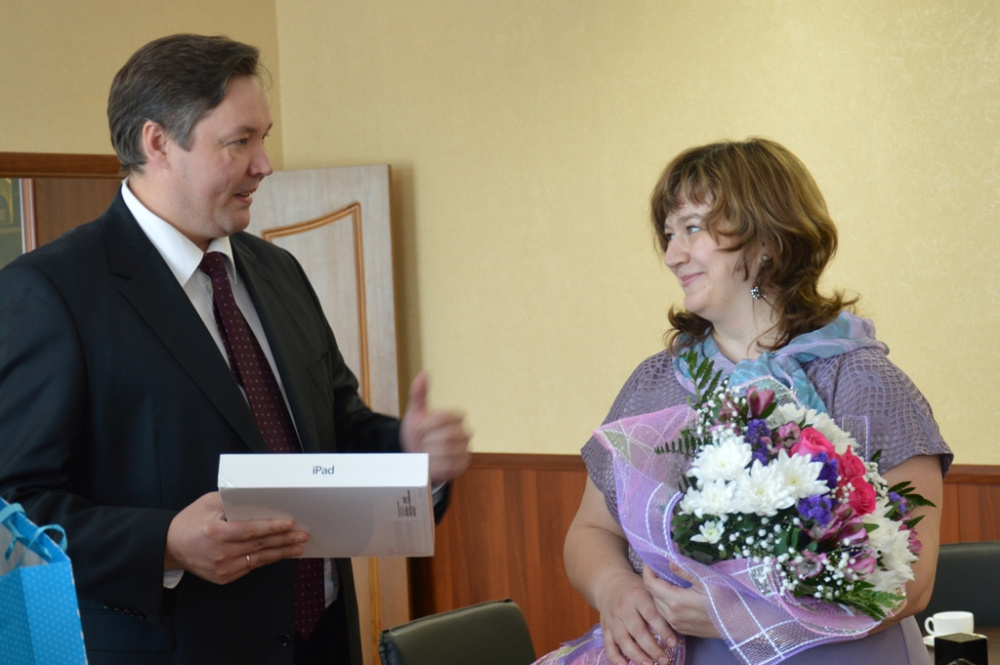 Вчера глава Катав-Ивановского района, член местного политсовета партии «Единая Россия» Евгений Киршин чествовал Юлию Путилину – победительницу регионального профессионального конкурса «Учитель года-2013» -и вручил ей отличный подарок IPad 4 Apple и роскошный букет цветов.