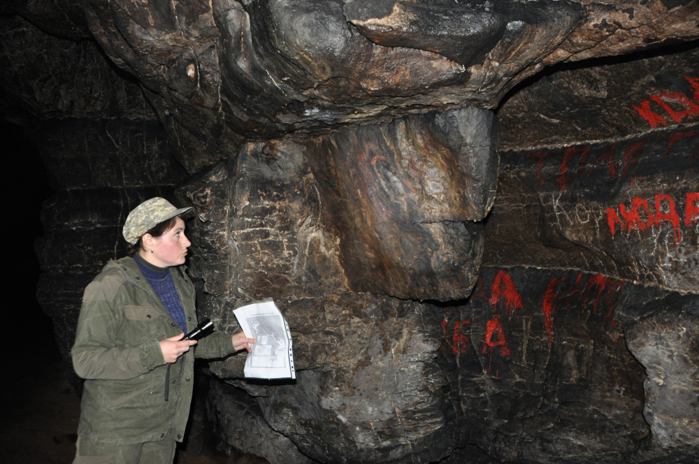 Когда анализировала собранную информацию, напрашивался вывод – как же уберечь пещеру от вандалов, ведь на стенах подземного дворца пестрит столько надписей, сколько глупцов здесь побывало. Заметны были и следы искателей кладов, незаконные раскопки. Повторюсь, пять лет тому назад пещера не выглядела такой беспомощной, такой израненной, какой она выглядит сейчас… Тут «похозяйничала» наглая стихия невежд. Вред гроту они нанесли непоправимый… Буквально в десяти сантиметрах от наскального рисунка мамонтёнка, который является брендовым символом Катав-Ивановского района, алой краской цинично нанесены надписи фамилий вандалов, которые чуть не уничтожили историческую реликвию. Сердце разрывается от боли и от возмущения… Перед этим бескультурным беспределом пора ставить мощный щит.