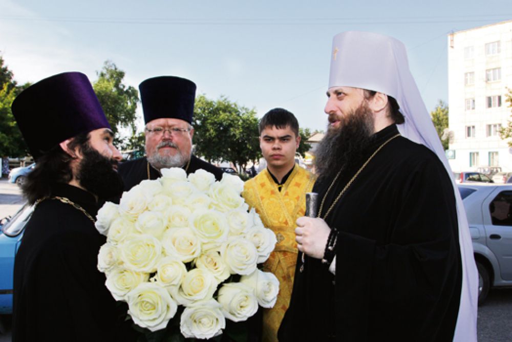 Он возглавил Божественную Литургию, на которую собралось много горожан, пришли воспитанники воскресной школы, первые лица города и района.