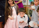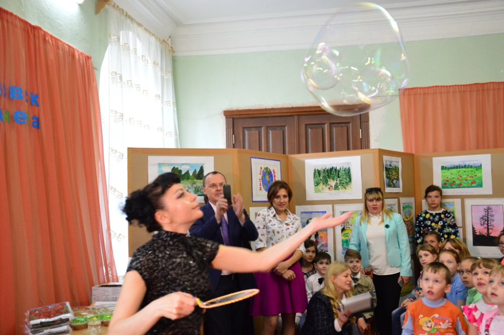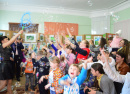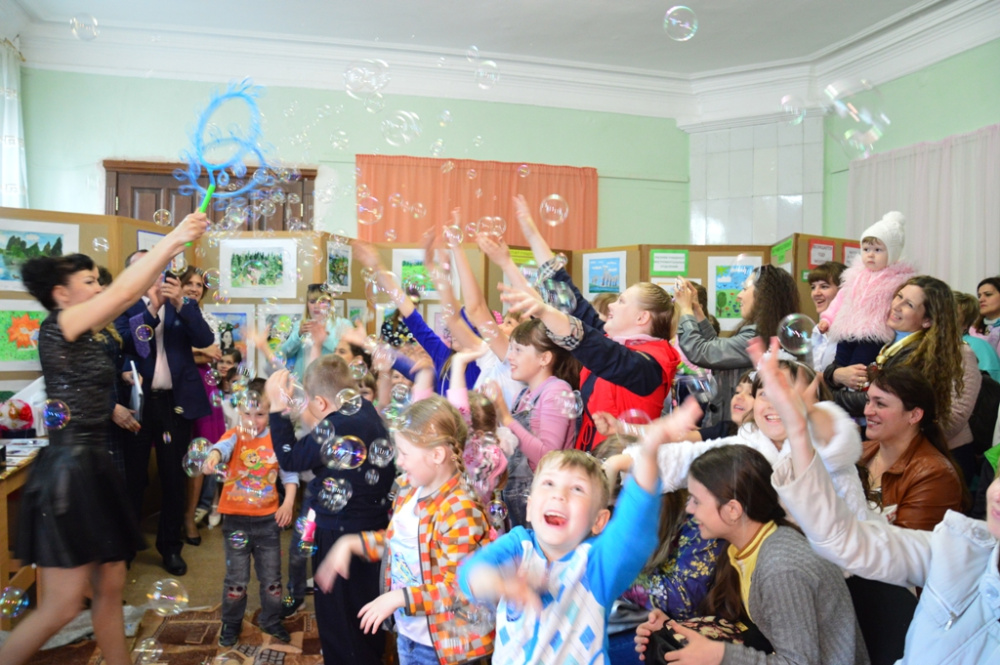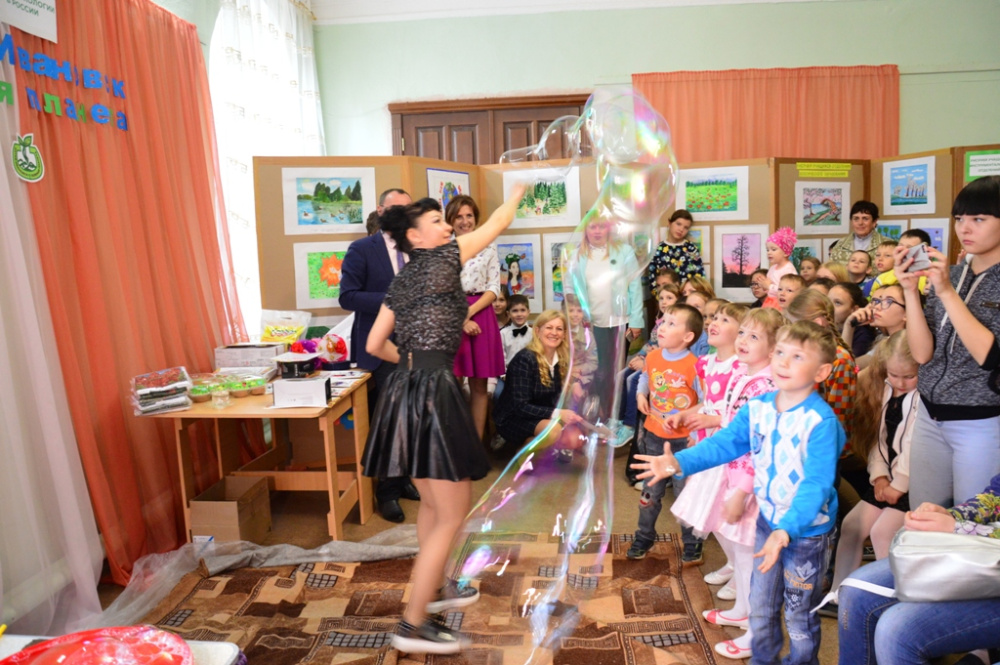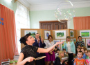 Коль в свой праздник дети ждали сюрприз, с его решили и начать. Артистка из соседней Юрюзани Мария Ким привезла с собой всякие волшебные рамки и шоу мыльных гирлянд. Наши дети видели это выступление впервые, они были просто в восторге от артистки и её интерактива. Подходили всё ближе и ближе к сцене и старались внести свою лепту в выступление, продырявливая пальчиками крупные мячики пузырей. Тянулись ручками к хвостатым мыльным кометам, ловили ладошками шары причудливых форм и загадывали желания. Казалось, в этот момент никого счастливее не было на свете! Вот что значит подарить детям радость! Их непосредственность и искренность подкупают, как здорово, когда мальчишки и девчонки объединены добротой и вниманием!