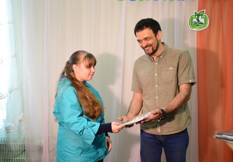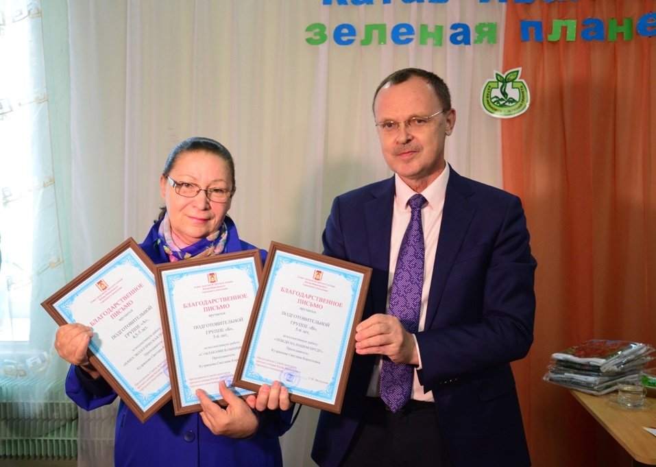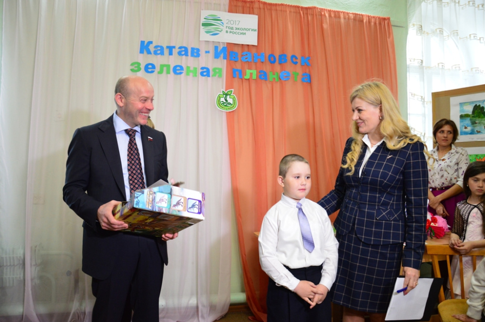 Специальным подарком от Совета депутатов Катав-Ивановска жюри решило отметить самого юного участника конкурса – 4-летнего Даниила Симору. Он нарисовал свою дружную семью, а над домом, где она живёт, светит и улыбается солнышко, летают разноцветные бабочки. Там, где дети воспитываются в доброте и любви, и экология идеальна, поэтому ребёнок и отображает свои чувства и настроение. Вручить Данилке Благодарственное письмо и набор для творчества выпала честь главе города Ивану Норко. Он по-отечески взял Даню на руки и поздравил его с первой серьёзной победой. Обычно общительный Даниил Александрович вёл себя по-взрослому и даже не стал давать интервью. Что ж, всё у него ещё впереди!