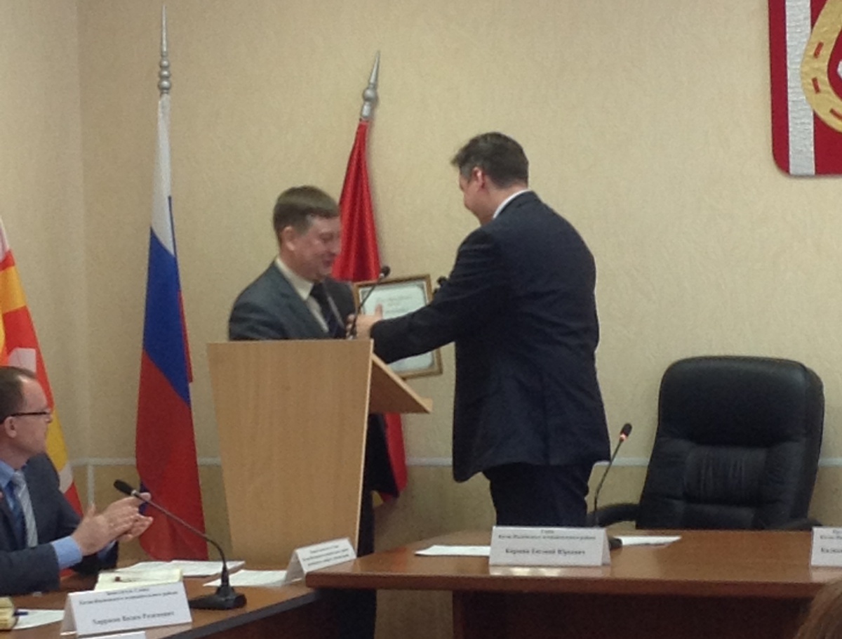Благодарственное письмо за подписью Ирины Гехт в понедельник на расширенном аппаратном совещании главе района передал Алексей Бисярин.