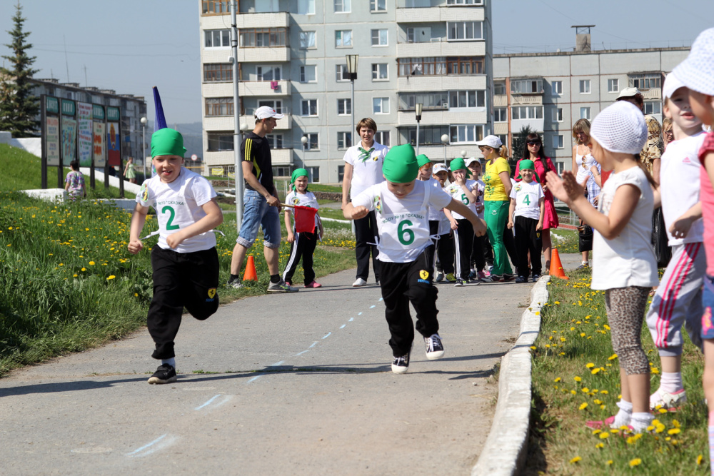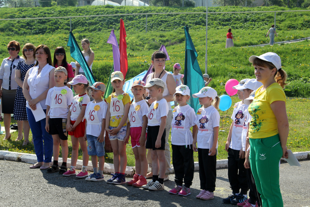 Началась праздничная программа в десять часов утра, у бывшего фонтана возле Центральной площади. Именно тут собрались несколько команд городских детских садов на спортивную программу «Веселая дорога к нормам ГТО».