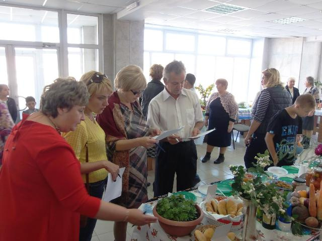 Участники удивляли не только соленьями и пирогами, но и размерами своих овощей. На столах можно было увидеть тыкву, размером с колесо, кабачок длиной до полутора метров, морковь весом один килограмм и картофель до тридцати сантиметров в диаметре. Яркими красками фойе заполнили цветы: мимоза, георгины, гладиолусы, астры, ромашки.
