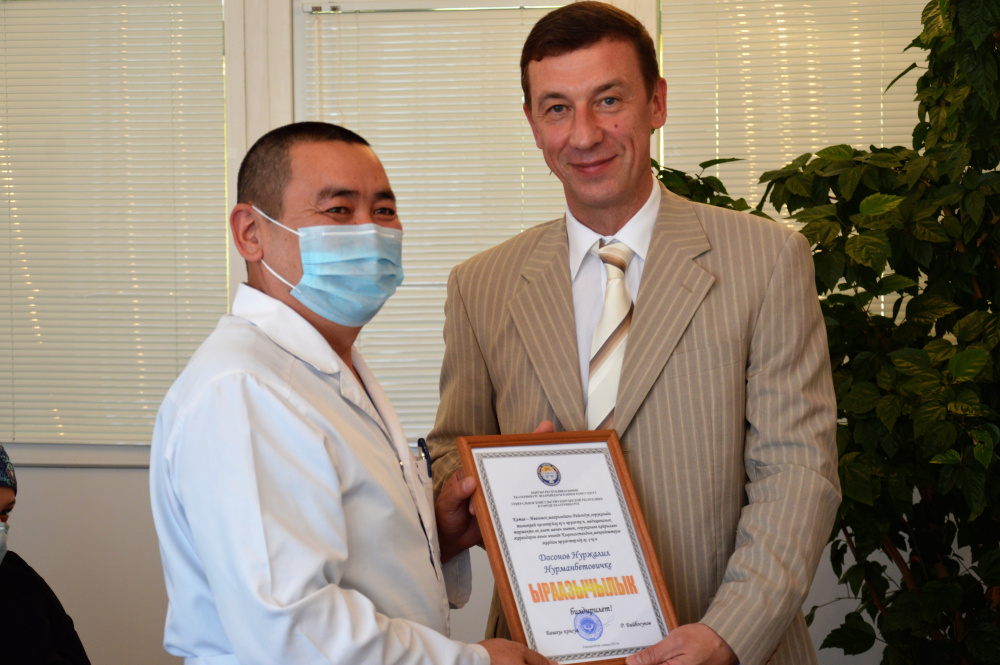 Отметим, что поводом к проведению мероприятия послужило не только знакомство с коллективом медучреждения, но и награждение хирургов, переехавших к нам из Верхнеуральска благодарностями Генерального консула Киргизской Республики в Екатеринбурге Руслана Бийбосунова. В августе Николай Шиманович принимал участие в конференции, посвящённой туризму и сельскохозяйственной ярмарке в Екатеринбурге, где и познакомился с Русланом Бийбосуновым. Мэр района рассказал консулу о хирургах, об их высоком профессионализме и сострадании. Спустя какое-то время Руслан Мелсович прислал благодарности своим землякам.