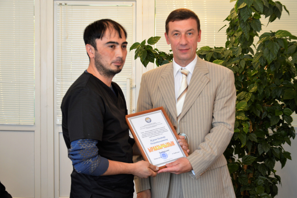 Николай Шиманович вручил благодарности врачу УЗИ Нуржалилу Досонову, врачу-онкологу Одилбеку Махмуджанову, хирургу поликлиники и врачу-эндоскописту Бахтиёру Жураеву.