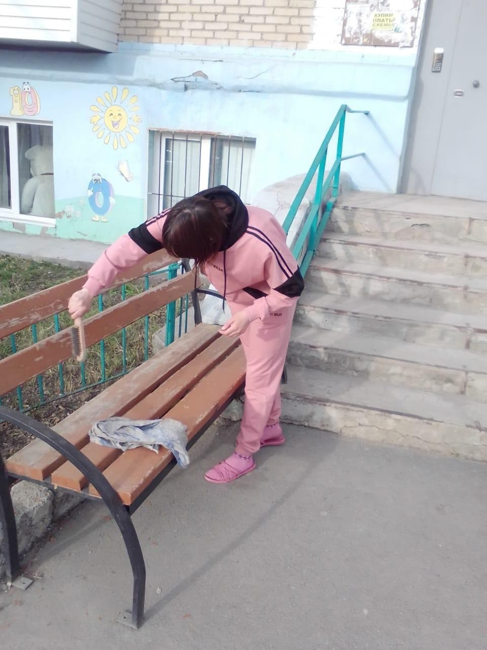 Горожане, депутаты и волонтёры провели субботники. На улице Красноармейской, д. 47 покрашены 12 скамеек; на ул. Разина, д. 18 - 6 лавочек, игровой комплекс, металлические формы для белья и выбивалка для ковров, на ул. Разина, д.20 – 10 лавочек, песочница, сиденья на карусельке, беседка с двумя скамейками. Краска осталась, горожане проведут повторное окрашивание.