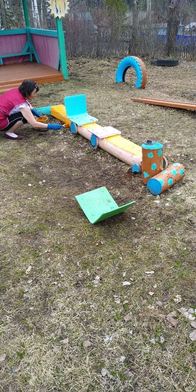 На игровой площадке в детсаду «Ёлочка» посёлка Башлес обновлены 14 игровых форм.