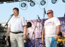 Еще раз поблагодарить организаторов замечательного фестиваля на сцену вышли Евгений Киршин и Евгений Калиничев, вручив им благодарности главы района и Собрания депутатов.