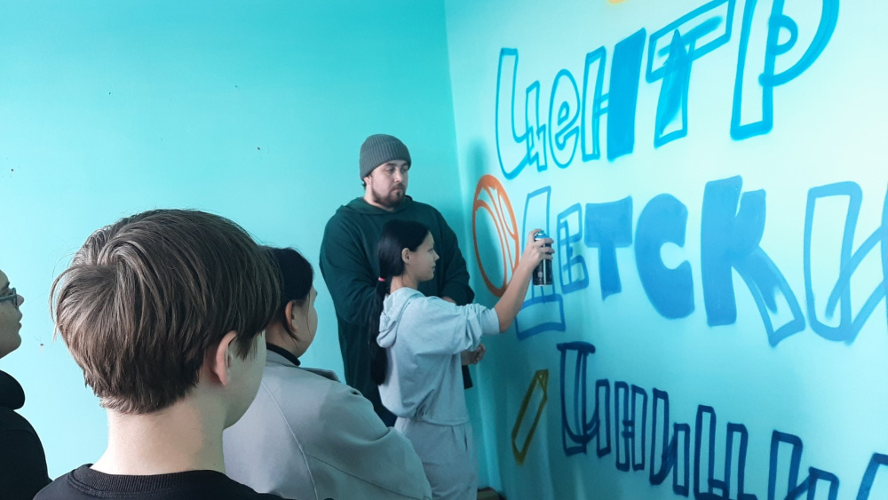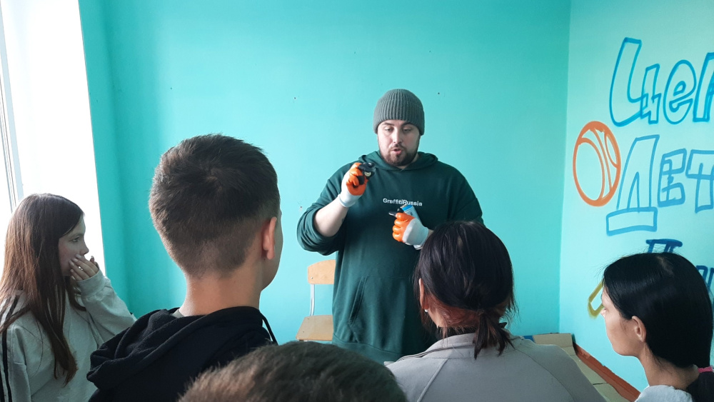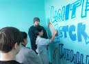 Молодой художник из Челябинска, автор мурала по ул. Ст. Разина 22 Даниил Смирнов, провел мастер-класс по граффити для учеников 8-9 классов, погрузив ребят в мир уличного искусства.