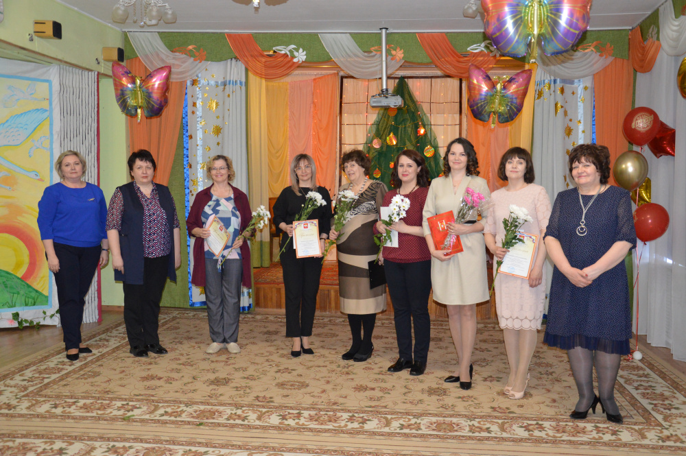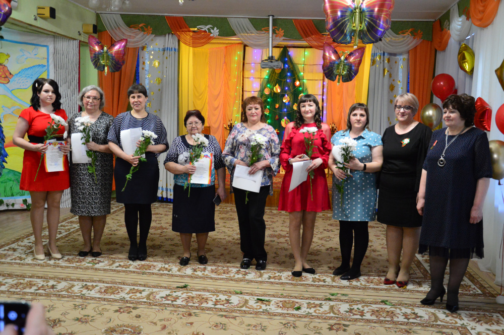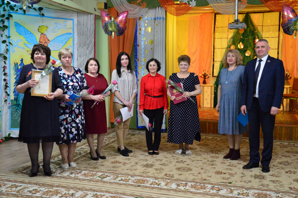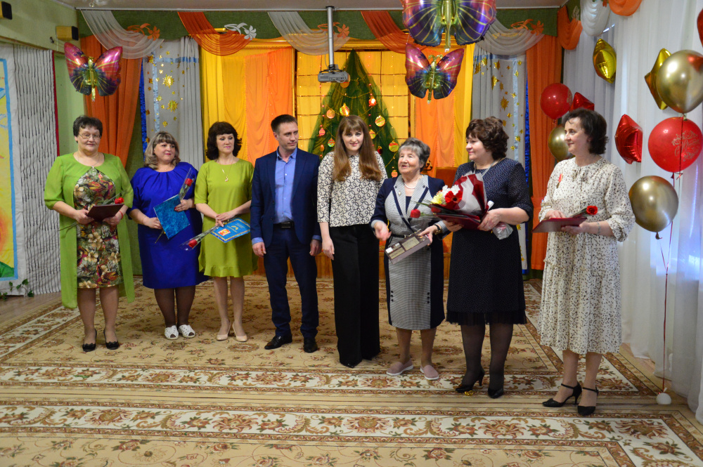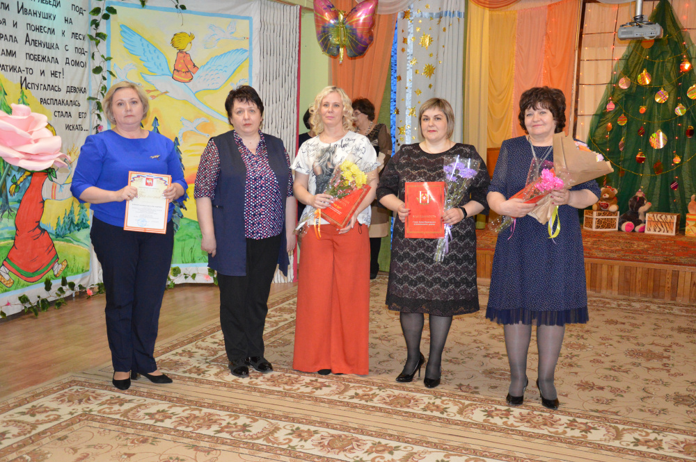После поздравительных речей проходило торжественное награждение. Лучшим сотрудникам были вручены награды - почетные грамоты и благодарности от главы муниципалитета, собрания депутатов, министерства и управления образования, администрации Юрюзани и заведующей детсада. От главы района Николая Шимановича коллективу вручена почетная грамота номиналом 50 тысяч рублей на развитие материально-технической базы учреждения.