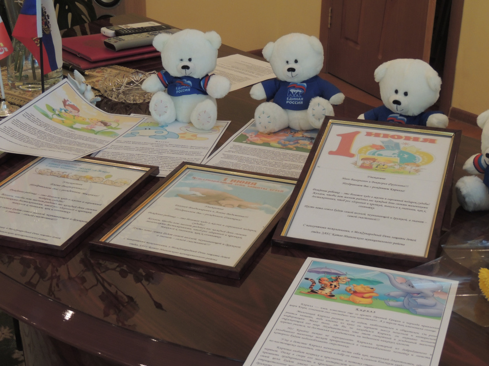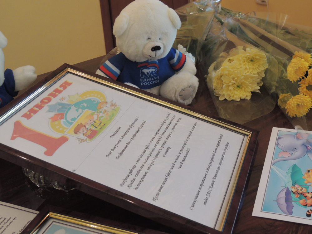От исполнительного комитета Катав-Ивановского местного отделения партии «Единая Россия» каждому новорожденному достался мягкий музыкальный мишка.