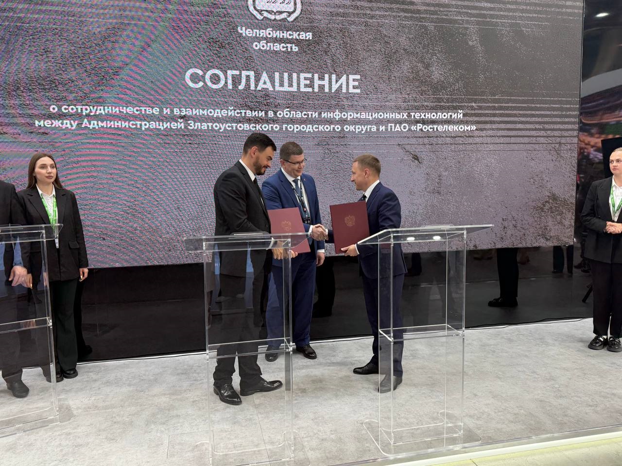 На Международной выставке «Иннопром-2025» в Екатеринбурге глава Златоустовского городского округа Олег Решетников и директор Челябинского филиала ПАО «Ростелеком» Евгений Макагонов подписали эксклюзивное соглашение о цифровизации городской среды. «Ростелеком» разработает и внедрит для оружейной столицы Южного Урала комплексную программу модернизации с использованием современных информационных технологий.Олег Решетников, глава Златоустовского городского округа: