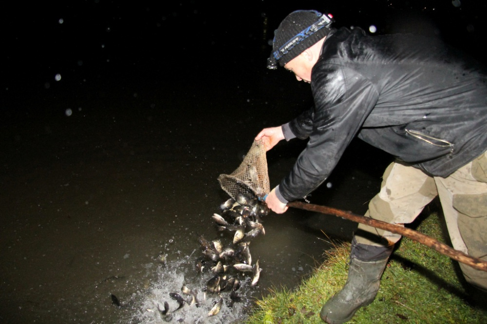 — Это даже хорошо, что ночью выпускаем карпа, — говорит Анатолий Дедилов, старший егерь охотобщества, который оказал большую помощь в разработке и реализации районной программы по охране водоемов. — Самый главный враг мальков — щука — спит, а до утра наши питомцы сумеют адаптироваться к новым условиям и уже не станут легкой добычей зубастой.