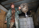 — Для ее транспортировки необходимы специальные емкости, — рассказывает Андрей Хортов. — Из пруда рыбопитомника вылавливаются сачками мальки, затем они помещаются в эти огромные баки. Для того, чтобы рыба хорошо перенесла переезд, ей необходим кислород, который из баллонов запускают в емкости. Мы приобрели 725 кг мальков. Одна особь весит примерно 50—60 граммов, то есть где-то около 15 тысяч маленьких карпов поместилось в эти два бака.