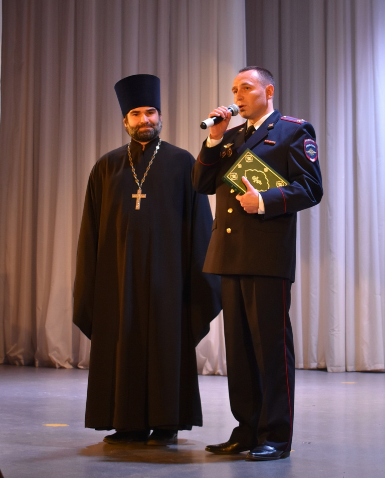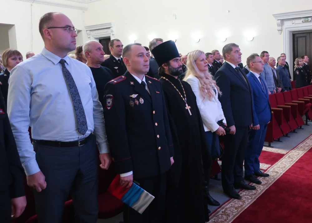 В адрес коллектива ОВД прозвучало много добрых слов благодарности за работу. Ведь на вверенной территории мы – партнёры, и очень важно, чтобы здесь торжествовали закон и порядок, чтобы граждане чувствовали себя в безопасности. Со сцены к личному составу обратились: председатель Собрания депутатов муниципалитета Николай Рудаков, заместитель главы района Павел Решетов, исполняющий обязанности главы Юрюзани Денис Голубев, военком Владимир Галкин, благочинный, настоятель Иоанно-Предтеченского храма о. Александр Симора, председатель ветеранской организации ОВД Павел Ульянов.
