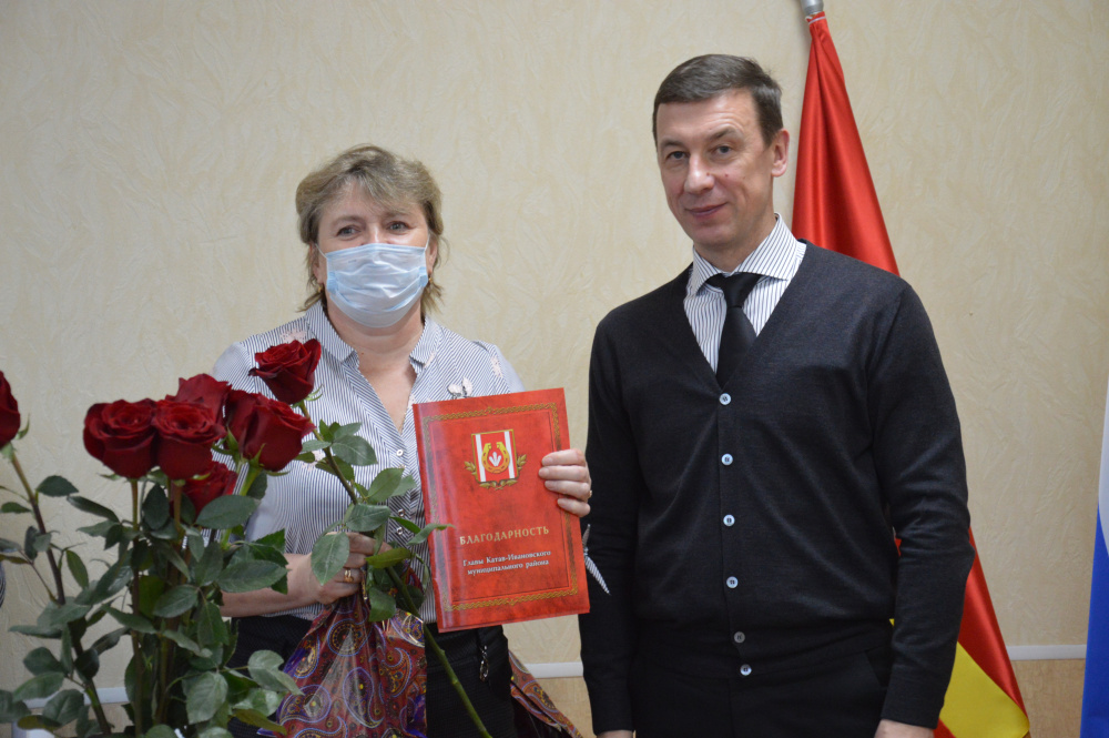 Глава Катав-Ивановского района Николай Шиманович поздравил волонтеров с прошедшим праздником и вручил благодарности главы за активное участие в рейтинговом голосовании по отбору общественных территорий и дизайн‑проектов благоустройства по Федеральному проекту «Формирование комфортной городской среды»: Елене Бучельниковой, директору школы №3 Юрюзани, Ксении Криушевой, старшему инспектору Управления образования Администрации Катав-Ивановского района, Елене Ларцевой, учителю школы №2 Юрюзани, Дмитрию Мальцеву, студенту второго курса уральского государственного университета путей сообщения.