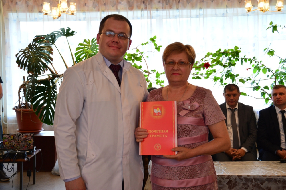 Почетные грамоты Собрания депутатов получили Галина Данилова Сергеевна, участковый врач терапевт, Ольга Малахова, медицинская сестра перевязочной, Светлана Нечай, фельдшер отделения скорой медицинской помощи, благодарности - Татьяна Андриянова, медицинская сестра поликлиники, Гульнара Асмандьярова, медицинская сестра поликлиники, Александр Хохлов, водитель скорой медицинской помощи.