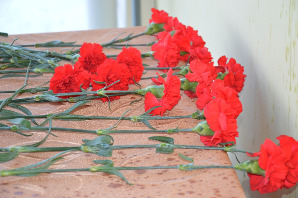 К мемориальной доске были возложены цветы, зажжены поминальные свечи, отец Владимир освятил памятный знак.