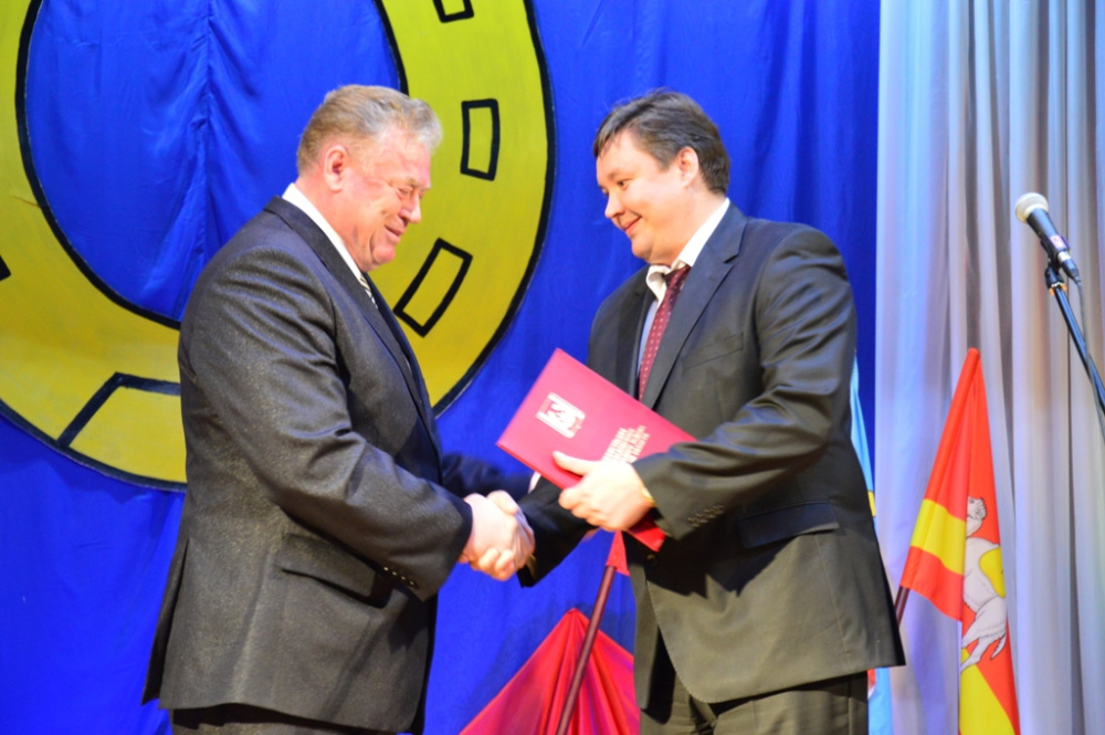 Николай Рудаков, уже теперь бывший глава города, проработавший на этом посту десять лет, передал символический ключ от Юрюзани вновь избранному главе.