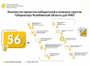 Победителями конкурса стали 56 инициатив социально ориентированных некоммерческих организаций региона, реализация которых начнется уже с 1 октября. Они получат грантовую поддержку на сумму более 43 млн. рублей. Среди победителей 3 НКО с 2-мя проектами. По правилам конкурса им придется выбрать только один проект для реализации на средства гранта Губернатора Челябинской области.