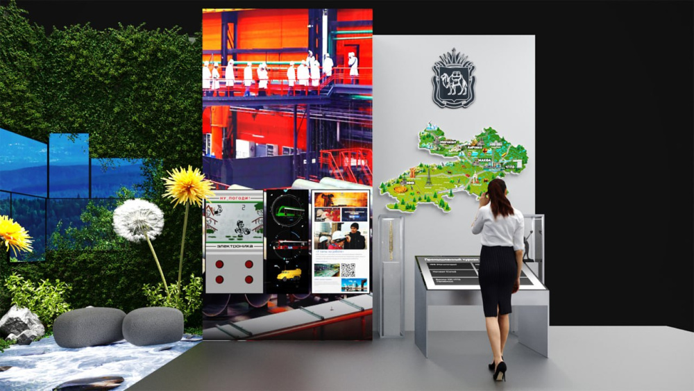 Вот так будет выглядеть стенд Челябинской области. Южный Урал покажет красоту своих гор и озер, а также достижения в металлургии, сельском хозяйстве, машиностроении, науке, спорте и культуре.
